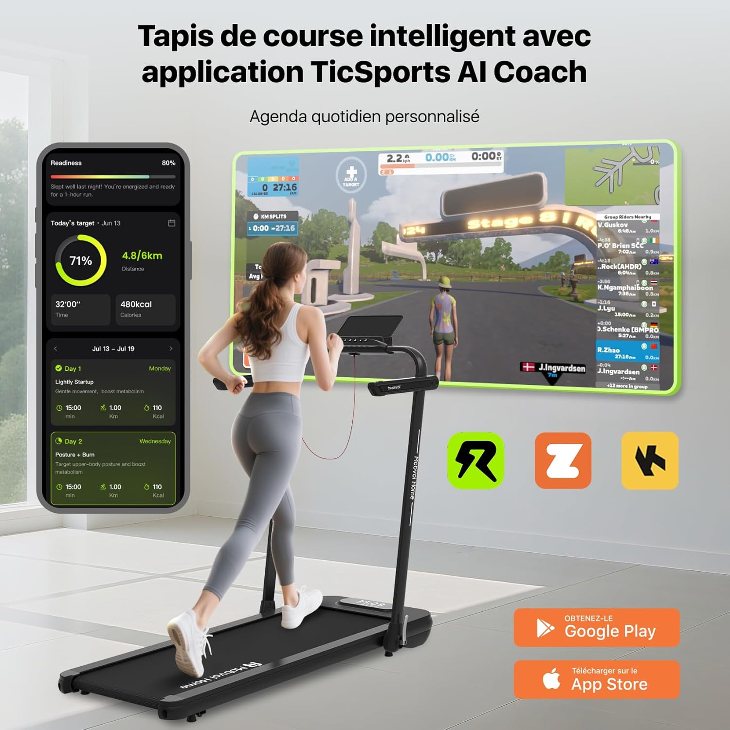 SE Smart Tapis de course pliable 3en1 12 km/h pour maison et bureau